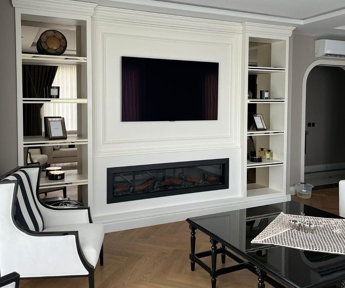 This refined interior embraces a fluid, open-plan layout by eliminating rigid spatial boundaries. The permeability between the sleeping, lounging, and bathing zones offers the user a seamless and luxurious experience. Warm wood finishes, soft upholstery, and ambient lighting come together to create an inviting environment. The integrated TV unit serves both aesthetic and functional purposes, while lighting elements enhance spatial depth and visual balance.